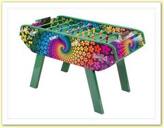 Dimensions : 1,50 m x 1,00 m x 0,95 m - 80 kg Meuble : hêtre 1er choix, verni polyuréthane Barres : télescopiques, acier rectifié chromé dur, interchangeables Joueurs : aluminium, fixés sur les barres par vis haute résistance, décorés main, peinture au four Buts : aluminium poli Pieds : hêtre massif, démontables Retour des balles sur les 2 grands cotés du jeu Livré avec 6 balles (liège ou plastique, à préciser)