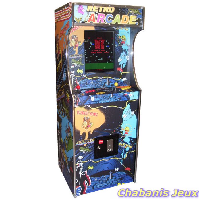 Table cocktail arcade Multijeux - Jeux vidéo table rétro  Borne arcade neuve + stickers multijeux. Cette borne upright ou droite, couverte de la tête au pied avec un autocollant vinyle est une illustration magnifique. Construite solidement avec des composants de haute qualité et ses 60 jeux des années 80, cette borne est disponible avec ou sans monnayeur.